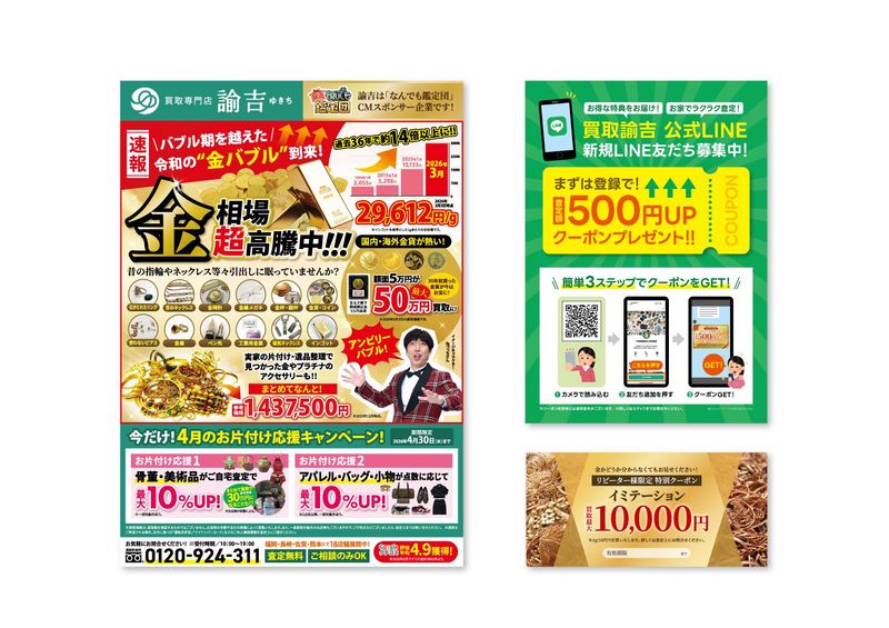 仕事内容 買取専門店の印刷物のグラフィックデザイナーとして業務をお任せします。 チラシがメインの業務となりますが、店舗サインや看板など幅広くいろんな業務に挑戦することができます! ・各店舗へのヒアリング ・企画提案 ・デザイン業務(※Illustrator、Photoshop等の基本スキル必須) ・コピーライティング、撮影など ・制作物のプレゼンテーション ・案件進行管理 など (業務詳細) ・広告物、社内印刷(チラシ/ノベルティ/ポスター・POP/名刺など)、イベント関連印刷物の制作 ・HP、販売サイトやLPのバナー、サムネイルの制作 ・店舗サイン、野立て看板の制作 ・印刷会社との調整・交渉業務