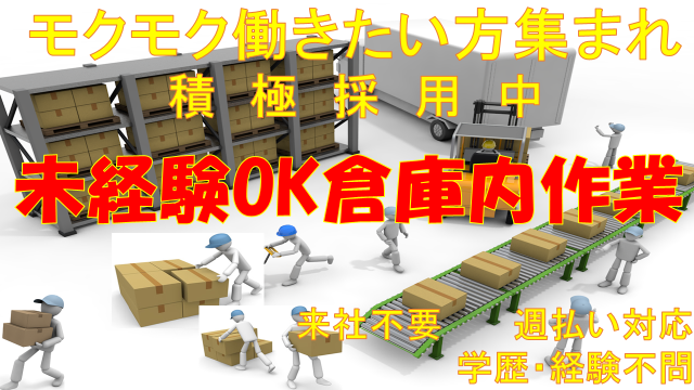 【8時~17時勤務】大手物流倉庫のお仕事/バイク・車通勤OK/土日休み/20代~40代男性活躍 \軽いフットワークでテキパキ働こう/ ◆こんな方におススメ(1つでも可) ・高時給でBIGに稼ぎたい方 ・スグに欲しい方(週払い可/規定有) ・汗をかくのが好きな方 ◆派遣先は大手物流倉庫 ・丁寧指導で未経験の方も安心して働ける ・オンもオフも充実できる環境 ・月収25万以上、高いレベルの安定収入 ・バイク・車通勤OKで通いやすい。 ◆派遣元は満足向上 面接、職場見学、採用、就業後のフォロー まで当社スタッフ1人があなたを担当! 相談もしやすく、就業後もずっとフォロー しますよ。 面談方法は選べますので ご希望の面談方法を下記から選択して いただき、応募入力画面の「備考」欄に 番号をご記入ください。