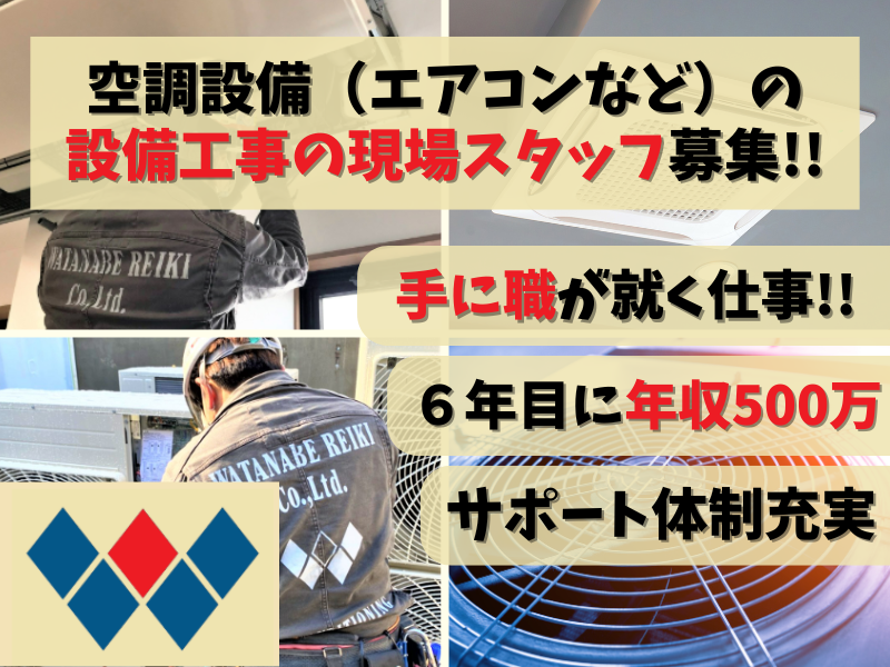仕事内容 = 未経験から、6年で年収550万円を 稼げる当社で一緒に働きませんか? = 「まだ、やりたい事は決まってない… でも、将来安心できる仕事がしたい!」 「今の給料でこのまま働くのが不安… 一生モノの稼げるスキルをつけたい!」 =============== ↑この想いは、当社が叶えます!! =============== 私たちは、ビルや、大型店舗 病院などの新築現場で 空調設備(エアコンなど)の設置や、 メンテナンスを行っている会社です。 社員数5名と小さな会社ですが、30年以上の歴史を誇る、安定感抜群の会社です。 >>当社で働くメリットは<< ✅ がっつり稼げる給料体系!! ✅ 少数精鋭なので意見を言いやすい環境!! ✅ 未経験から活躍できるサポート体制!! 前職は「サッカーのコーチ」でした サッカーのコーチは、給料が少なく、 仕事柄、将来性にも不安を感じたので、 転職することを決めました。 そんな僕が、転職を決めた理由は、 【先輩の給料が高かったこと】 「同世代なのに年収500万越えか…」 「稼げるスキルをつけてみたいかも…」 ============= 「自分も稼ぎたい」 「手に職をつけてみたい」 ============= こんな思いで転職をしました。 実際に、入社してからは、 仕事を覚えることに不安はなく、 先輩社員も優しく教えていただけるので、 徐々にスキルアップしている実感もあります。 自分の頑張りが給料に反映されるのが 今の、モチベにもつながっています。 規模の大きな会社ではありませんが、 規模が大きくないからこそ、 先輩にも直接聞きやすい環境ですし、 意見も直接社長に話すことができるので この会社に入社してよかったなと思っています! 【具体的な仕事内容】 ・新築現場での電気・空調設備設置 ※エアコンの取替えなど ・各種設備の修理 ・点検 ・メンテナンスなど