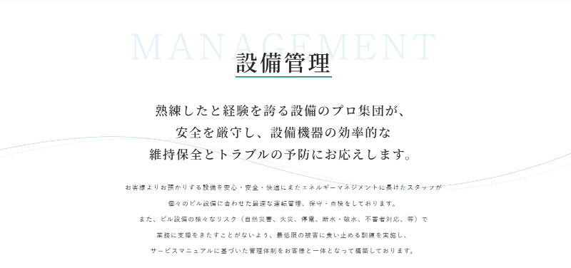 求める人材: 【必須要件】 ・高卒以上 ・59歳まで(定年を上限とする) ・基本的なPCスキルをお持ちの方(Excel入力、Word文書作成など) ★ビルメンテナンス関連の資格をお持ちの方優遇いたします★ ★施設管理のご経験をお持ちの方優遇いたします★