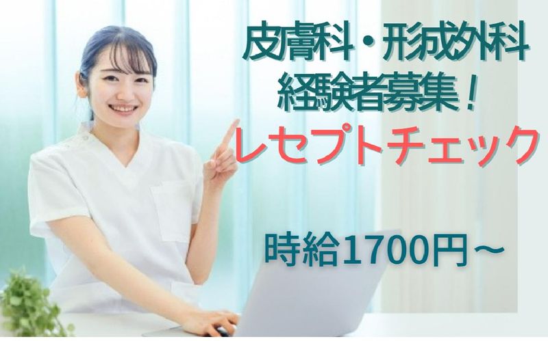 仕事内容 昨年開院した女性医師のクリニック 毎月のレセプトチェックを お願いできる方を大募集!! ****この求人のポイント**** ・レセプトチェックのみ出勤 ・平日のみ ・毎月1日〜10日までの間の1〜3日程度 ・勤務日数、勤務時間は応相談 ・好時給!! Wワークにも最適◎ ・離職率0%! ・お肌に関する知識もアップ! ・20~50代活躍中の職場 ・茗荷谷駅から2分 ***************** ✅仕事内容 作成済みのレセプト(診療報酬明細書)の チェックが主な業務です。 ・算定内容、病名と診療内容の整合性 ・患者さんの情報 など 不備の有無をシステムだけでなく 目視でも点検していただき 請求に誤りがないか確認してください。 その他、付随する業務を お願いすることもあります。 ★毎月スポット勤務です ★毎月1日~10日の間の平日のみ 勤務日数・勤務時間はご相談に応じます。 「経験を活かしてちょっと働きたい」 「Wワークでお給料にチョイ足し!」 ・・そんな方にお勧めの求人です。 まずは気軽にお問合せ下さい。 ――――――――――――――――― ◆女性Dr.による温かな診療 茗荷谷駅近くに昨年7月オープン。 生まれつきのあざ、 後天的に発生したあざ ホクロ除去、アンチエイジングの治療を 専門にできるクリニックです。 保険診療のクリニック内負担なし Google口コミ4.8 ◆患者さんの約半数は赤ちゃん 血管腫の赤いあざや、色素の青あざは 子供は皮ふが薄いため目立ち、 成長と共にに本人のコンプレックスに なる場合があります。 そんなお悩みのご家族と患者さんの お話を丁寧に伺い治療をしています。 ◆院内は小さなお子さんの視点で インテリアから絵本までセレクト。 こどもから大人まで 思わずニッコリしてしまいます。 ◆お肌に詳しく! 皮ふやお肌の知識が自然と 身に付いていきます。 スキンケアの役にたちますよ♪ コスメや施術のスタッフ割引 そんなメリットもご用意しています! 仕事と子育ての両立も、 患者さんの気持ちも痛いほどわかる だから診療を頑張ります! という先生です。 ぜひ、あなたの力を貸して下さい。