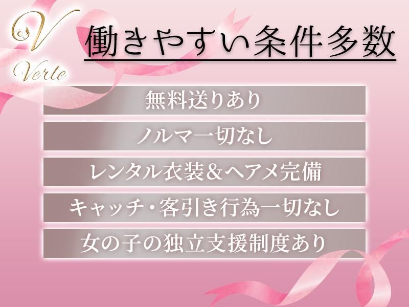 仕事内容 / 落ち着いたエリア「下高井戸」にOPENした 隠れ家ラウンジ「Verle」 \ ⭐Verleってどんなお店? ✅モノトーン調で落ち着いた雰囲気 ✅衣装レンタル/私服勤務OK ✅落ち着いたエリアなので客層◎ ✅新宿、渋谷からもアクセスも◎ ✅学生さんや社会人の方も多数活躍中! ✨さらに働きやすい魅力多数! ✅売上の60%バック ✅給与体系が選べる ✅美容手当あり ✅ノルマなし ✅キャッチ・客引き一切なし そして、今なら5日間で9万円保証あり! 【仕事内容】 誰でも始めやすいシンプルなお仕事です✨ ✅具体的には... お客様にお酒を作ったり 楽しくお話するだけ!以上! とってもカンタンだからすぐに覚えられますよ! そして頑張りはお給料に還元することお約束✨ なんと!売上の60%をバックします! 「話すのが好き」な方はもちろんですが 「聞くのが好き」な方にもぴったり! 未経験やナイトワークが初めてだと 稼げないというわけではありません! 全くの未経験から始めて、 トップの売上を記録した先輩もいます! 経験のある方はもちろん、 未経験の方にも納得していただける給与モデルです! 夜のお仕事以外でも 接客や対人の経験を活かせるお仕事です。 もちろん経験者さんは即戦力として優遇します! 街頭での客引きはしないから 「街を歩いている知り合いに見つかった..」 なんて身バレの心配もありません! 副業・Wワークにもピッタリ✨ 働きやすいPOINT多数あり! ✅ 未経験でも安心して働ける環境! 未経験から一人前のキャストになった先輩が多数! 多くの店舗を運営するグループだから、 一人ひとりを輝かせるノウハウがあります! ✅ 客層も良さも◎ 土地柄もあり客層の良さも保証できます。 落ち着いたエリアで、品の良い飲み方される方が多いです。 繁華街のワイワイした雰囲気が苦手な方にもぴったり ✅ 美容施術割引あり 綺麗を頑張る女の子を応援! 色々な美容施術の割引あり◎ ネイルやマツエクなど 提携サロンだとかなりお得に受けられます! ✅ 日払い&即勤務OK 頑張った分はしっかりその日のうちにGET♪ 高額バックもあるので短時間でも超稼げちゃいます! 副業にもピッタリだと好評です! 他にも働きたいと思える所はたくさん! ⭐個人ロッカー完備 ⭐体入何度でもOK!6時間保証 ⭐お友達紹介料3万円~ 気になったら... まずは面接や体験入店へ!