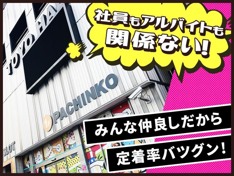 仕事内容 ━━━━━━━━━━━━━━━━━━━ ★☆★// TOYO HALL //★☆★ //// パチンコホールスタッフ //// ━━━━━━━━━━━━━━━━━━━ 今回の募集では… 【9:30-16:30】または【16:30-23:00】 の全時間帯で出勤できる方をお待ちしています!! 30〜50代のフリーター・Wワークの方が多く活躍している職場です。 家庭や私生活と両立しながら、安定して働ける環境が整っています! 明るく元気な雰囲気の職場で、長く続けられるお仕事です♪ 高時給1,400円~!!!  ̄ ̄ ̄ ̄ ̄ ̄ ̄ ̄ ̄ ̄ ̄ ̄ ̄ ̄ ̄ 週2日~、1日6時間の固定勤務で、 休憩も1時間しっかり取れます! 家事や育児、他の仕事とも両立しやすいシフトです。 しっかりとした収入を得られます☆ ━━━━━━━━━━━ 玉運びは一切ありません ━━━━━━━━━━━ TOYO HALLでは、パチンコ・スロット全台に 各台計数機を導入しているので、 重たい玉を運ぶことは一切ありません! お客様が遊び終わった後の出玉やメダルは 専用のカード内に集計済み。 景品交換もお客様セルフで、 お手伝い程度なのでラクラクです☆ ━━━━━━━━━ .★注目POINT★. ━━━━━━━━━ ◆パチンコ&スロット知識不要!! ◆フロント受付自動化で、楽々♪ ◆自由シフト制でプライベート充実♪ ◆髪色自由&ピアスOK♪ 「地元で安定して働きたい!」 「日中または夜間にシフトを合わせたい!」 「家庭のために安定収入を得たい!」 など、あなたの希望に合わせた働き方ができます! 働く時間や曜日について、気軽にご相談ください◎ ━━━━ 仕事内容 ━━━━ まずはホール業務からスタート! 慣れてきたらカウンター業務もお任せします。 難しい内容は一切ありません! 仕事を覚えながら、無理なく進められます◎ 《ホール業務》 ●遊技台のエラー解除 ●お客様が遊び終わった台の拭き上げ・ゴミの片付け ●喫煙コーナーの灰皿掃除 ●店内設備のご案内 《カウンター業務》 ●景品交換の補充・お手伝い ●会員登録のお手続き ●店内アナウンス ━━━━━━━━━━━━ エラー解除?機械ニガテ… ━━━━━━━━━━━━ 遊技台のエラーは、玉詰まりやメダル不足が主な原因。 1,2回見たらすぐに覚えられる内容です! 先輩スタッフが丁寧にサポートしますので、 安心してお仕事がスタートできます♪ ━━━━━━━━━━━━ .★楽しいお仕事です★. ━━━━━━━━━━━━ 「お姉さん、ちょっと目押しして!」 なんて声がかかることもあります(笑) 地域密着型の店舗なので、常連のお客様が多く、 顔なじみの方々とのやりとりも気軽にできます♪ 毎日楽しく働きながら、地域に貢献できますよ!