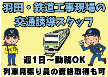 PRコメント 列車見張員のお仕事/週1日~OK!快適室内休憩所&資格取得でしっかり稼げる! 【仕事内容】 ☆列車見張員募集☆ 品川区内での鉄道工事のお仕事です。工事箇所で作業員さんが安全に作業したり、運行する列車や電車が安全に通行できるように監視するお仕事です♪ ◎列車見張員のお仕事が初めてという方でも、しっかりとした研修があるので安心!やりがいのあるお仕事です♪♪
