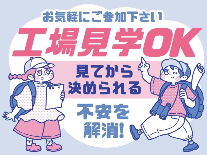 職場環境 男女比は半々! 製造業未経験から始めたスタッフも多数在籍中♪ 先輩がイチから丁寧に教えていきます◎ 髪色自由だから、あなたらしく働けます! ✨工場内の飲料自販機が格安! ・缶90円~ ・ペットボトル110円~ 喫煙所:喫煙所あり(屋外)