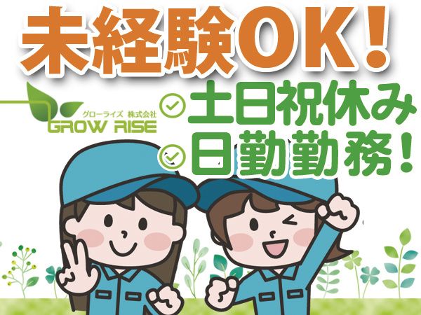 仕事内容 ピン差し、組立・検査業務 時給1,300円~ ◎土日祝休み ◎日勤 ◎経験者優遇 【お仕事内容】 熱板へのピン差し、組立・検査業務 手作業での部品の差し、組立、検査のお仕事。 きれいな工場で、作業環境も快適!! 8:30~17:20の日勤で土日祝休みです。 組立や検査などの経験がなくても 未経験でも大丈夫です!! 時給1,300円での 製造業務になります。 〇グローライズについて 派遣のお仕事やアルバイトを探すなら 松本市のグローライズ株式会社へ。 中信地区(松本市、塩尻市、安曇野市)の 求人情報多数ございます。 初めての方でも安心です。 あなたの就職をトータルサポート致します!! 〇応募について 勤務地は安曇野市豊科になります。 安曇野市の方はもちろん 松本市、山形村の方も在籍しております。 他にも多数お仕事あります。 https://entori.jp/grow-rise ご不明点はお気軽にお電話ください。 (0263-31-3152/採用担当まで) お気軽にご応募・お問い合わせください。