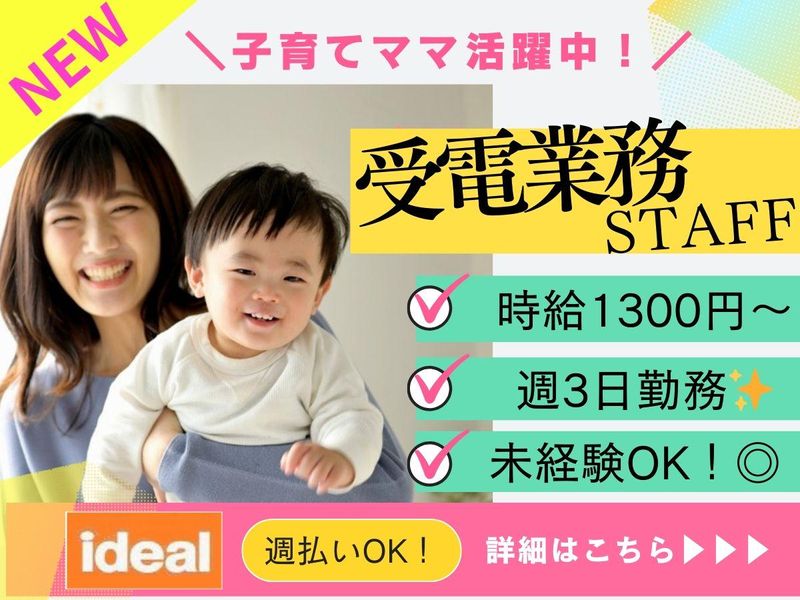 ⭐子育て世代活躍中!✨週3日・4時間~OK!⏰発信業務ナシ⭐