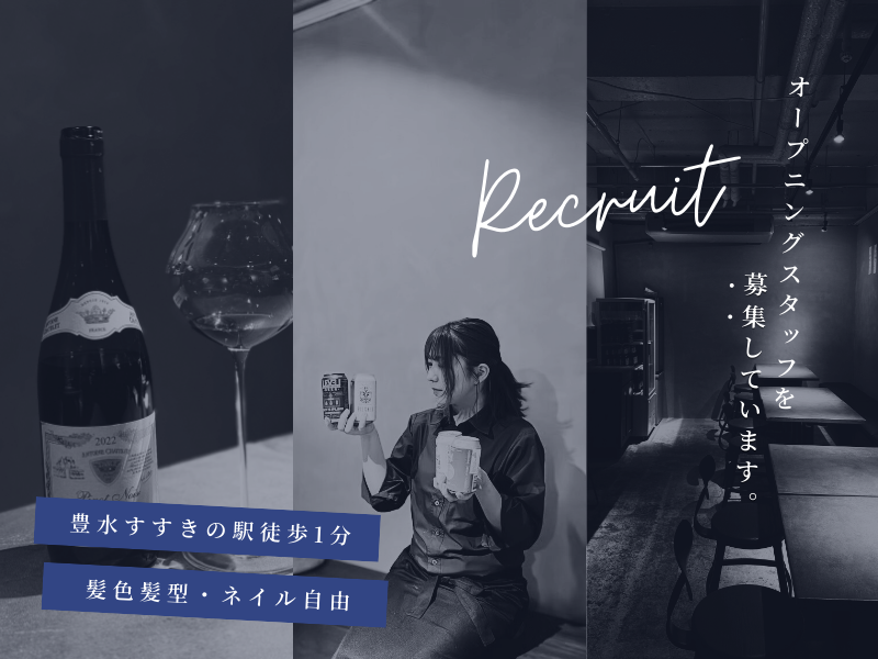 仕事内容 【募集要項】 豊水すすきの駅から徒歩1分の立地にバルをNEW OPENいたします。 ワインやカクテルなどのお酒や一品料理を提供するお店のオープニングスタッフとして 一緒にお店を盛り上げてくれるスタッフを大募集いたします。 【仕事内容】 ■お客様をお席へご案内 ■お酒をつくる ■料理やドリンクを運ぶ ■お会計をする ■料理をつくる ■SNSの企画立案など 「アルバイト自体が初めて」 「ホール経験がない」 「料理が苦手」 という方でも安心して働けます◎ 研修制度が充実しておりますので、 分からない事は何でも聞いてください! 【ここが魅力】 *未経験スタートも大歓迎 持ち物はやる気と笑顔だけ◎ 「飲食店経験ナシ」「初めてのアルバイト」 そんなあなたも大歓迎です◎ *まずはお気軽にご応募ください。!! 週3日~、1日4時間~勤務OKでシフト自由! 学業等との両立もできます◎ *髪色・髪型、お洒落も自由に♪ 業務に支障が出ない範囲であれば ネイルやピアスもokです◎ *嬉しい駅チカ 地下鉄南北線「すすきの駅」徒歩3分 地下鉄南北線「豊水すすきの駅」徒歩1 分 駅チカなので通いやすさ◎ *積極社員登用中! アルバイトから社員を目指したい そんなあなたも全力サポート◎ *SNS好きにもオススメ*。・ 当店では情報発信にも力を入れて おりますので、SNSの閲覧・投稿が お好きな方も大歓迎です♪ 働きたい意欲があれば、 その気持ちを全力で応援します☆