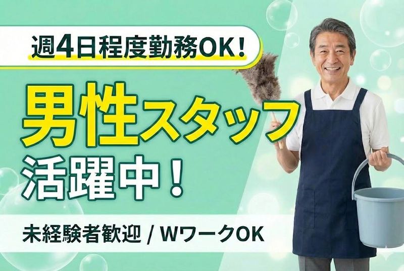 求めている人材 ◎清掃未経験の方大歓迎! ・学歴・経験は問いません。 ・主婦(主夫)歓迎! ・清掃経験ある方優遇! ☆男性スタッフ活躍中の職場です。 <希望の曜日や勤務日数はご相談ください>