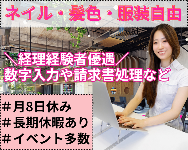 求めている人材 \経験・資格不問/ ※経理事務の勤務経験がある方は優遇します。 ✨こんな方に向いています!✨ ✅ 書類や数字のチェックなど、正確さが求められる作業が得意な方 ✅ 誰かをサポートすることにやりがいを感じる方 ✅ こまやかな気配りや丁寧な対応が得意な方 ✅ デスクワークだけでなく、人との関わりも大切にしたい方 ✅ チームの「困った!」にすばやく動けるフットワークの軽い方 ✅ 飲食やサービス業に興味があり、裏方から関わりたい方 ✅ 自分の役割を超えて「こうしたら良くなる」を考えられる方