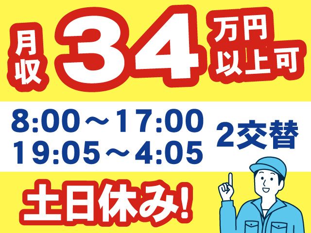 シフト制 勤務時間 8:00~17:00 19:05~4:05 *実働8時間、休憩60分 *二交替
