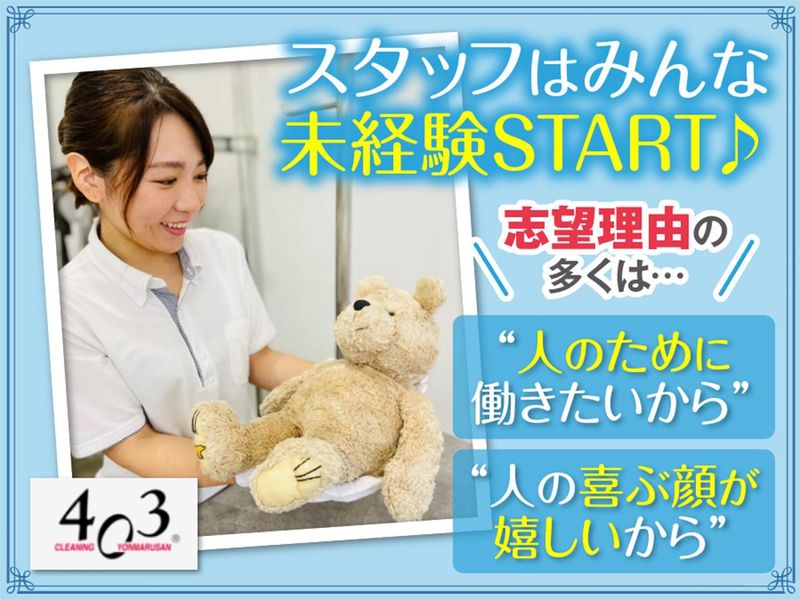 仕事内容 特殊なクリーニング店 ぬいぐるみやテントのクリーニングを 多く扱うクリーニング店です ~店舗数~ 山梨県に30店舗展開! 地元に愛されるクリーニング店を目指しており、 山梨県内でもトップレベルシェア率を 誇っております* 業績も右肩上がりで安定◎ *....*.....*.....*.....*.....*.....*....* 【オススメPoint】 ①「人のために働きたい」 という思考の方大歓迎◎ お客様のために、 コツコツと日々成長出来る方を 求めています! 現社員の中には、 「自分のため」ではなく、 「人のため」に働きたいという理由で 弊社に入社しています! ②年間休日115日&完全週休2日制 働きやすさ◎ ライフワークバランスを大事にしたい! などもOK ③初から、給与は妥協しなくていい 月給24万円〜、賞与年2回。 「バイトより稼げて、ちゃんと休める」 そう感じて入社を決めた 20代スタッフも多数! ④おしゃれ自由♬ 髪色自由、オフィスネイル、ひげもOK◎ 華美すぎなければ、 ネックレスやピアスなどの アクセサリーもOKです◎ シャツやTシャツの支給があり、 着こなし方は規定に沿っていれば自由! 作業スタッフとして、 自分らしく働ける環境を 大切にしています。 ⑤イベント行事 3ヶ月に一度、 会社行事としてBBQや遠足もあり、 従業員の楽しみになっています! ======= ☘お仕事内容 ======= ◆来店されたお客様の受付・レジ対応 ◆お預かりした衣類にタグ付け ◆検品作業 ◆クリーニング後の確認作業 ◆衣類の返却 などをお任せします! その他、空いた時間でPOP作成や 備品整理などもお願いします♪ 基本1人体制の2交代勤務! 忙しい時は3人体制なので未経験も安心♪ ※実際にクリーニング業務を することはありません。 ================ 未経験でも安心の研修・OJT体制 ================ 第二新卒の方も安心して スタートできるよう、 基礎から学べる研修制度を整えています。 クリーニングの基本知識や 特殊品の扱い方も段階的に習得可能です。 入社後はOJTを通じて、 先輩が実務を丁寧にサポートします。 現場で一つずつ 確認しながら覚えられるため、 未経験でも無理なくスキルを 身につけていただけます。 *....*.....*.....*.....*.....*.....*....* メディアも注目のクリーニング会社 ■X(旧 Twitter)→@403_net https://x.com/403_net ■Instagram→@cleaning_403 @tentcleaning_403 https://www.instagram.com/cleaning_403 ■facebook→クリーニング403 https://m.facebook.com/cleaning403/ *....*.....*.....*.....*.....*.....*....*
