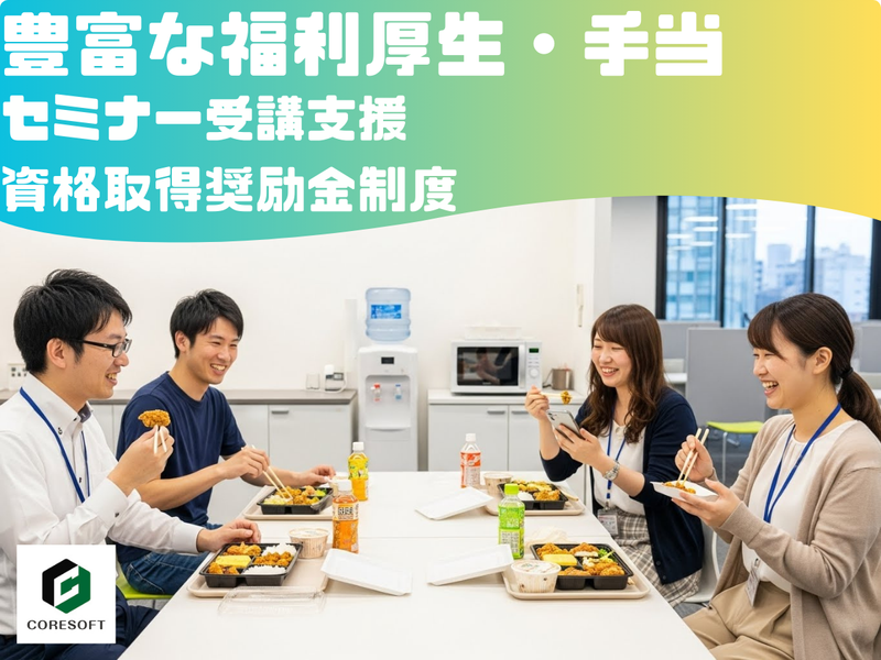 仕事内容 【コアソフトについて】 当社と長年取引のある プライム市場企業の案件に、 メンバーとして参画していただきます。 当社社員およびBPとチームで 参画いただきます。 経験やご希望に応じて、 PL・PMなど幅広いキャリアパスを 描くことが可能です。 【主な仕事内容/プロジェクト】 詳細:信託銀行のお客様が受託した資産の 状況等を確認するためのシステム開発 ※データを作りこむのは他の システムであり、 当該システムについてはほどんどの 金融の行有無知識を必要しません。 ✅開発環境 ・OS:Linux ・言語:java/JSP/JS/bash SQL(長大クエリ) ※javaとクエリは必須 ・DB:DB2 ・ミドルウェア:WAS/Cognos 今後ご希望に合わせて、 別案件への異動や社内受託案件への 異動も可能です。 WEB系、アプリ開発系、インフラ系等の 多彩な案件の中から ご希望のプロジェクトをお任せします。 ✅取引先企業(一部抜粋) ・アイリスオーヤマ株式総会 ・アディダスジャパン株式会社 ・伊藤忠商事株式会社 ・株式会社大塚製薬工場 ・ソフトバンク株式会社 ・株式会社電通 ・株式会社ニトリホールディングス ・ヤマト運輸株式会社 ・株式会社日立製作所 ・富士通株式会社 ・特許庁 ・農水省 ・国立研究開発法人理化学研究所 ・千葉大学医学部附属病院 ・慶応義塾大学 ・名古屋大学 など