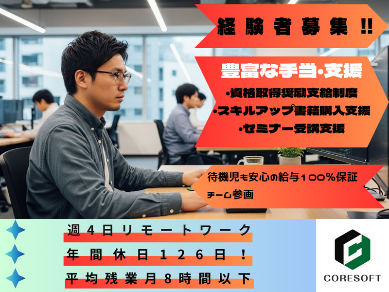 実務経験3年以上‼週4日リモート/年間休日126日、完休2日