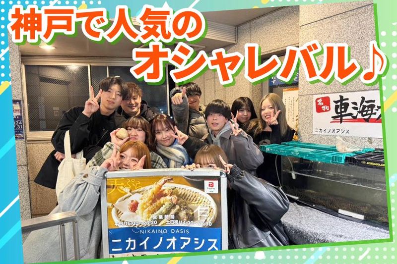 仕事内容 <週5日勤務で時給1300円の高収入◎> <神戸で人気のオシャレバル◎> <20・30代のフリーター活躍中!> 「ニカイノオアシス」 季節に合わせた食材を使用しているので 働きながら旬の食材にも詳しくなれます◎ お洒落な内装にこだわったお店。 店内やお料理の雰囲気はSNSをチェック! 天ぷらをメインに、 普通の居酒屋では味わえないお料理を楽しめる新感覚バルです。 出汁を利かせ、料亭に寄せたお料理も提供しています。 【お仕事内容】 主な業務は配膳やドリンク作りのホール業務全般、 盛り付け、洗い場等の調理補助全般をお任せ。 いきなり全ての業務をお任せするわけではなく、 まずはできることからお任せします。 初めは先輩が隣についているので、 いつでも頼ってくださいね。 ~当社のご紹介~ 株式会社M-SUNは、 神戸を中心に大阪に飲食店を展開中! 居酒屋・ピッツェリア・グリルバルなど 幅広いジャンルを提供。 Grill Bar MITSU(本店・元町店・神戸店) 炭火焼き鳥酒場だんご(本店・JR三宮東口店) 川北商店(梅田店・新大阪店・KITTE大阪店) ニカイノオアシス(天ぷら) 今後も店舗展開の予定あり! 【HP】https://m-sun.co.jp 会社のホームページもぜひご覧ください!