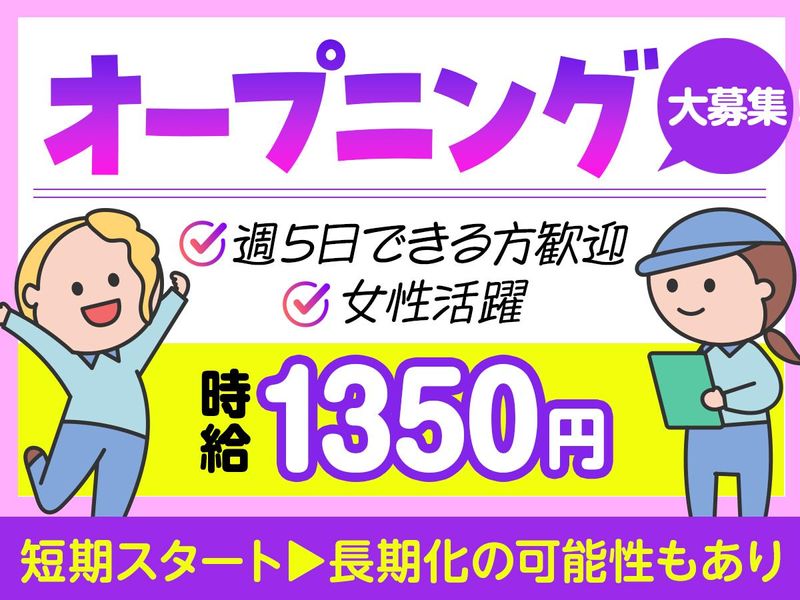 オープニング募集!女性スタッフ活躍中♪週5日勤務◎簡単軽作業