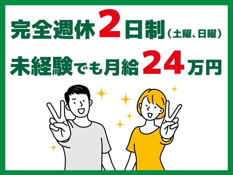 月給240,000円 給与詳細 基本給:月給 24万円 固定残業代:なし 【一律手当】 全員に一律で支払われる通勤・皆勤・家族手当金額:なし 全員に一律で支払われるその他手当金額:なし ◇交通費支給(規定あり) ◇定期昇給あり ◇時間外手当あり