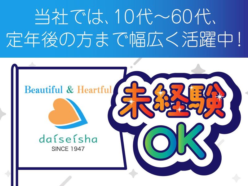 求めている人材 【未経験大歓迎】 ◎初めての方、ブランクのある方、もちろん経験のある方も大歓迎♪ ◎女性活躍中の職場♪ ◎「大清社」では、10代~60代、ミドル、シニア、定年後の方まで幅広く活躍中です♪ ※今回は「木・金・土の固定シフトで入れる方」の募集です。