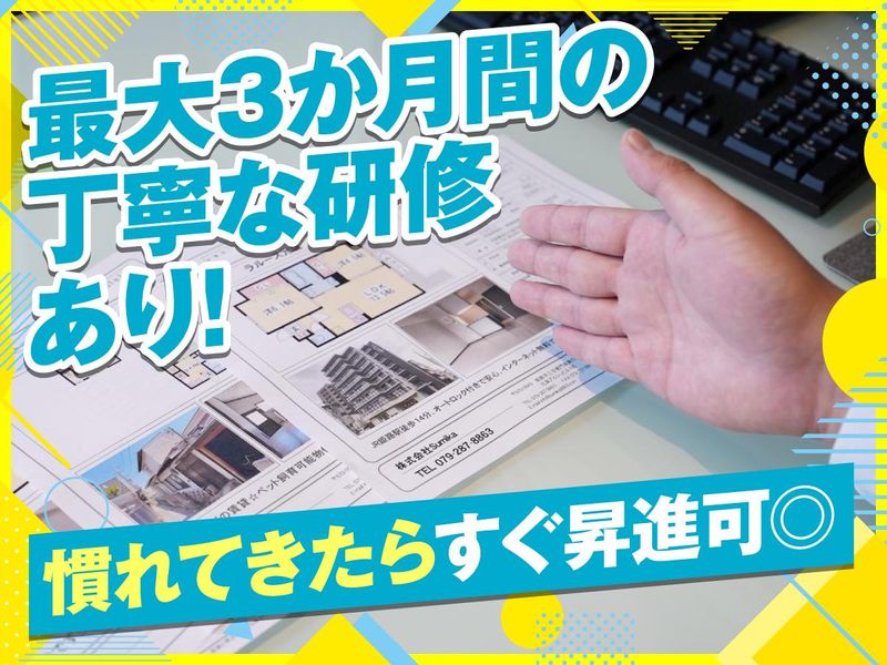 仕事内容 ⏩ 完全反響営業でテレアポ・飛び込み無し ⏩ 成約率50%以上! ⏩ 即昇給・昇格のチャンスあり! ⏩ 完全週休二日&残業なしでメリハリ◎ ✔ 成果がすぐに収入に繋がる! 頑張った分だけ 毎月の歩合・インセンティブで 収入もモチベーションもアップ! 頑張り次第で収入がどんどん増えていく、 そんな成長を実感できる仕事です。 - ⭐営業未経験でも安心してスタート 未経験からでも【短期間で結果を出せる】 ためのサポートが整っているので、 経験がなくても心配いりません。 - ⭐独立支援もばっちり 過去に20代のスタッフが 10人以上独立した実績もあります◎ 会社の仕組みについて知りたい 経営のノウハウを知りたい などあれば、いつでもご相談くださいね! 「もっと稼ぎたい」 「自分の力を試してみたい」 「将来は自分で店舗を立ち上げたい」 そんな気持ちがあれば、 ぜひ一度私たちに話を聞いてみてください。 ―――――――――― 仕事内容のご紹介 ―――――――――― ・お客様の希望をヒアリング ・物件内覧 ・鍵の引き渡し ・契約手続き ・物件の写真撮影 ・図面作成(慣れてからでOK!) ・契約書・請求書の作成(簡単なPC作業) などをお任せします。 最初は先輩が横について一緒に動きます! 分からないことはいつでも質問OK◎ ⭐ 飛び込みもテレアポもゼロ! SUUMO、ホームズ、at home、カナリーなど 日本の大手不動産ポータルサイトに掲載! 来店予約が月に100件以上あるので こちらからの営業は一切なし! 全員が適切な数をこなせるのも魅力♪