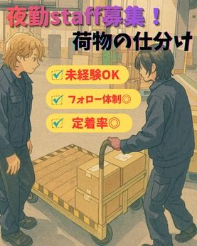 資格 ・未経験者歓迎 ・物流・軽作業の経験者歓迎(職種は問いません) ・身体を動かすことが好きな方歓迎 ・ブランクOK ・学歴不問 ・未経験さんからベテランさんまで幅広く在籍中! ・丁寧にお教えしますので、初心者さんも安心して続けられます◎ ・夜勤デビューにおすすめNo1職場です◎