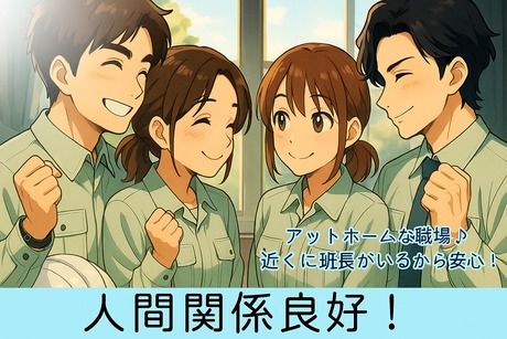 【保険制度】 雇用保険、労災保険、健康保険、厚生年金 待遇・福利厚生 【福利厚生】 ◇ 昇給年1回 ◇ 賞与年2回 (対象は社内規定あり:管理班長職以上) ◇ 退職金あり(60歳定年※65歳まで雇用延長有) ◇ 各種社会保険完備(健康・厚生年金・労災・雇用) ◇ 育児・介護休業制度あり ◇ 各種研修・資格支援制度あり ◇ 寮完備(1R~1LDK・寮費2万5千円程度) ◇ 家具家電レンタル可能 ◇ 個人ロッカー・食堂完備 ◎ 全国で0.2%しか認定されていない優良派遣事業者です! 派遣会社との間で期間の定めのない雇用契約を結ぶため、 定期的な雇用契約書の更新の必要がなく、雇用の安定性が高い点が特徴です。 また、株式会社ヒューマンアイズでの正社員雇用となるので スキルアップやキャリア形成のサポートを受けることが可能です。