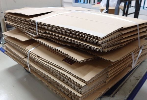 段ボールの貼り付け加工作業