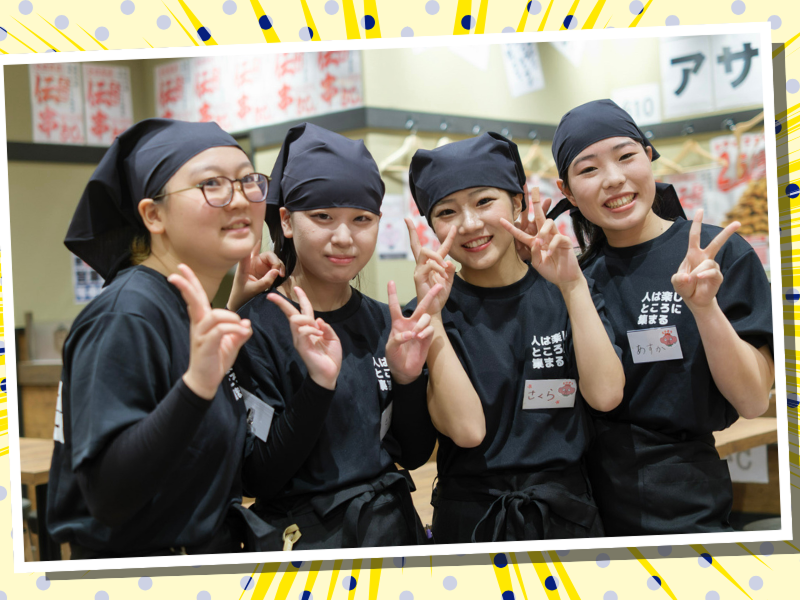 アピールポイント: ………★ 新時代ってどんなお店? ★……… ┏…★…━━━━━━━━━━━━━━━┓ 全国展開の超人気居酒屋! ┗━━━━━━━━━━━━━━━…★…┛ 「日本一のパリモチ鶏皮串【伝串(でんぐし)】」が名物の、 全国200店舗以上を展開する超人気居酒屋ブランド! 一本一本丁寧に焼き上げた伝串は、外はパリッ、中はモチッの新食感。 お客様の「うまっ!!」が止まらない看板メニューです。 “新時代”は、ただの居酒屋じゃありません。 お客様とスタッフが一緒に笑って、盛り上がって、 「場の空気そのものを楽しむ」エンタメ空間! だから働くスタッフも自然と仲良くなる。 学校のクラスよりチームワークがある。 そんな“青春が流れる居酒屋”です。 ――――――――――――――――――― ┏…★…━━━━━━━━━━━━━━━┓ アットホームな職場の詳細 ┗━━━━━━━━━━━━━━━…★…┛ みんな友達の理由! ● 学生・フリーター中心に幅広い年代が活躍 ● バイトも社員も壁がなく、とってもフラット! ● お友達を誘って一緒に働いている学生さんも多数 ● 1年間を通して友達ができてプライベートでも遊んでる!