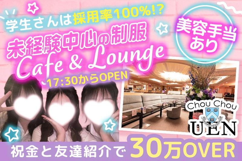 仕事内容 ━━━━━━━━━━━━━━━━━ ⭐シュシュってどんなお店なの?⭐ ━━━━━━━━━━━━━━━━━ ✅10代~20代前半まで専門のCafe&Lounge ✅95%が未経験からスタート! ✅白シャツ/黒スカートの可愛い制服 ✅衣装&ヘアメは完全無料で手ぶら出勤OK ✅都内で多店舗展開するグループで安心 ✅大手グループだから待遇もめっちゃいい! ✅登録だけや短期でも大歓迎 ✅学生なら採用率100%!? ✅新学期までの短期や年度末までの短期もOK ━━━━━━━━━━━━━━━━━━ ⭐キャスト満足度150%超の超待遇⭐ ━━━━━━━━━━━━━━━━━━ 面接~入店後まで「お金」に困らない?! シュシュに決めて間違いなし♪ 今応募して、その日に体験して お給料をもらうことも可能です✨ ✨面接時は面接交通費支給 ✨未経験でも時給5,000円~! ✨入店祝金10万円プレゼント ✨さらにお友達紹介1人につき20万円 ✨ドリンクバック1杯『800円』 ✨嬉しい『美容手当あり』 ✨医療費は会社負担! ✨広範囲への送りも『無料』です! 全くの未経験でも 1日のお給料【日給3万円】は全然現実的!! 集客が良い! 未経験専門のお店! 高額バックの種類も豊富! 上野で長年愛されるお店! だからこそ、未経験でもしっかり稼げる理由があります✨ 応募してその日に働くこともできます! ━━━━━━━━━ ⭐お仕事内容⭐ ━━━━━━━━━ 白シャツ×黒スカートの制服を着て お客さんと楽しくお話しするだけ! 以上!とってもシンプルです✨ 具体的には ✅お客様を笑顔でお迎え ✅水割りなどの簡単なお酒作り ✅座って楽しくお話し ✅お客様を笑顔でおみおくり 誰でも気軽に始められる カンタン&シンプルなお仕事です! お話し好きさんにも、聞き上手さんにも ピッタリですっ⭐ ドリンク1杯飲むだけで800円がお給料に+されます⭐ お酒が飲めなくてもソフトドリンクでOKです! // | 現役大学生・院生・短大・専門など… | 全くの未経験者さんを積極採用中です!!!! \\ 働いている女の子の95%が ナイトワーク未経験スタートの初心者さん! 今までもこれからも未経験者が多いからこそ、 お店のサポート実績にも自信があります⭐ まずは笑顔があればOK♪ 紳士なお客様が多く、スタッフも優しいので 安心して働いていただけます(*‘∀‘)v ✅対人経験がいかせる!?  ̄ ̄ ̄ ̄ ̄ ̄ ̄ ̄ ̄ ̄ ̄ ̄ 居酒屋さんやカフェなどの飲食店や販売など 接客業の経験などで、対人に抵抗がなければ 今すぐ活躍できますっ♪ ━━━━━━━━━━━━━━━━ ⭐就活・将来にも活かせる⭐ ━━━━━━━━━━━━━━━━ さまざまな業界・職種のお客様がご来店する ので、お仕事をしながら今まで知らなかった いろんなお話が聞けます♪ お客様のお人柄に合わせた話し方やコミュ力 トークスキルなども身に付いて、近い将来の 就職活動への度胸や自信、人間力も合わせて 身に付けることができますよ◎ ━━━━━━━━━━━━━━━ 法令遵守ってどうゆうコト? ━━━━━━━━━━━━━━━ 運営しているグループはは都内で 多くの店舗を展開しているグループ法人◎ 風営法のルールに則っている優良企業なので、 安心して働いていただけます。 例えば… ✅深夜1時を超える違法営業ナシ ✅身バレ対策の徹底 ✅売上げノルマなし ✅制服・小物・靴すべて無料レンタル ✅快適な1Rマンション寮完備 ✅医療費会社負担(条件あり) その他… ✨日払い/週払い&全額手渡しOK ✨各種高額バックあり ✨お酒が飲めなくてもOK ✨月1出勤でもOK ✨髪色・ピアス・タトゥー自由 などなど♪まずは体験入店で、実際の働きや すさを感じてみてください!!