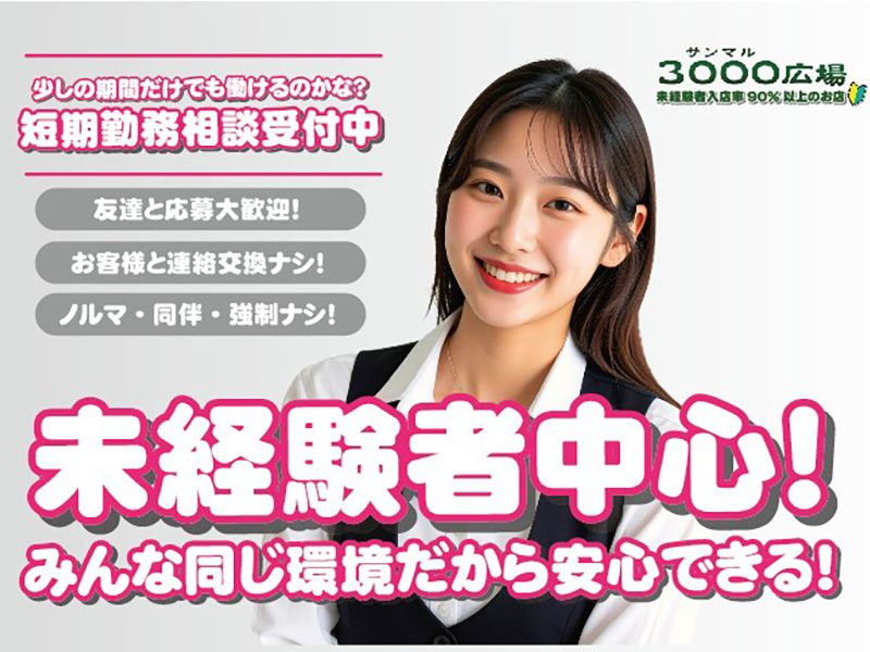 アピールポイント: 働きやすさ抜群の環境が整っています!秘密は厳守で働けるのでご安心ください! ●働き方について シフトは自己申告制で、1日2時間から勤務OK!自分のライフスタイルに合わせて出勤時間や帰宅時間も自由!是非相談して下さい。平日又は週末だけの勤務もOK! 【満足できる条件面!】 * 提携託児所 * 提携駐車場も完備 * 車通勤も可能!お酒を飲まなくてOKだから安心して車で通えます! * 日払いOKなので、急な出費にも対応可能! * 無料のヘアメイクレッスンもあり、働きながら自分磨きもできます♪ * 地下鉄での帰宅OK! * タクシー送りも可能! * 同伴・アフター・罰金・ノルマは一切なし! * 女性担当者が働き方についてしっかり相談に乗るので、不安なくスタートできます! * チップは全額支給だから嬉しい! * 上品なおしゃれかわいいスーツ!露出も少ないのもPOINT! 7~13号をご用意しております!無料貸与なのでご安心ください!髪型も自由ですよ! ◎原価チェーン https://genka.jp/shop/3000hiroba/