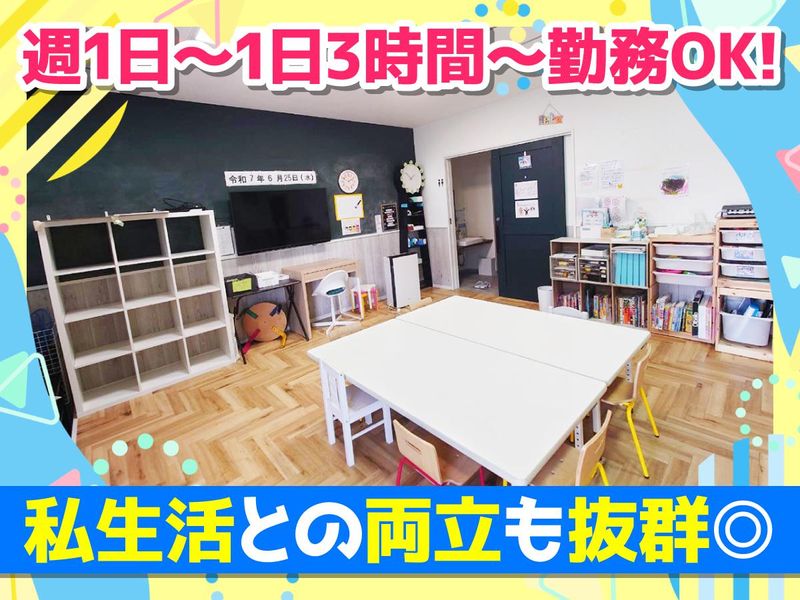 勤務時間詳細 【勤務時間】 平日:13:30~19:00 土日:9:00~17:00 *週1日1日3時間~OK *シフトは気軽に相談OK 17時までの勤務や短時間勤務も気軽にご相談ください! 子どもの急な体調不良や学校行事なども気軽に相談してくださいね◎