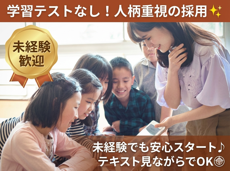 求めている人材 \こんな方が活躍中!/ ✅教員を目指す大学生さん (20代の先輩講師が多いから情報交換もできる!) ✅人に教えることが好きな方 ✅誰かをサポートすること、寄り添うことが好きな方 ✅頑張る子どもたちを応援したい方 ✅中学校レベルの基本5教科を、テキストを見ながら説明できる方 ✅学歴不問、教育業界未経験歓迎、ブランク復帰も大歓迎! ✅主婦(主夫)さん、フリーターさんも大歓迎!