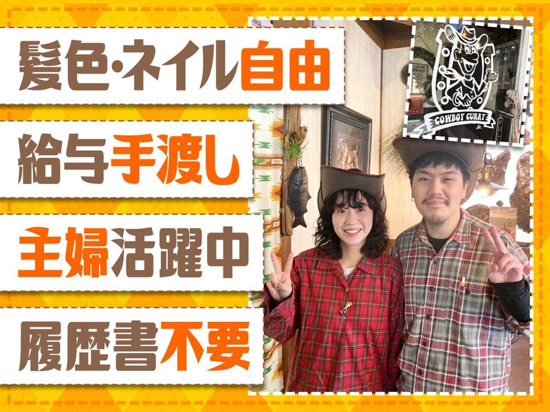 仕事内容 *土日祝いずれか勤務できる方大歓迎 -------------------- #2024年2月17日オープン #アメリカンなかっこいいお店 #お腹が空いてくる最高ビジュアル #三木・稲美町・明石・小野から175号線スグ! 「美味すぎて感動」 「ゴロゴロ入ったお肉が最高」 と口コミでも高評価! お客様のご案内、 注文のお伺い(紙でとります!)、 お会計、食べ終わったお皿の片付け、 洗い物などをおまかせ! 最初はゆっくり少しずつ教えていきます! やさしいスタッフしかいないので 安心してくださいね。 バタバタと忙しすぎることはないので 「自分がこんなふうに接客されたらうれしいな」 というような丁寧な対応をお願いします。 楽しく働けたらいいなと思っています! ※キッチンもやってみたいという方はご相談ください -------------------- *スタッフについて 社員2名、AP3名のお店です。 APは大学生と主婦が活躍中! みんな明るくて楽しくてフランクな関係です。 飲みに行ったりは一切ないので テキパキ働いて 仕事が終わればサッと帰っています。 40代・50代も活躍中! 175号線沿い、スシローさんの近くのお店です。 車やバイク通勤もモチロンOKです! *こんな店長です! 明石出身 一児のパパ 趣味:料理好き、子ども好き(去年男の子が産まれました)、野球観戦(阪神ファン)、古着屋さん巡り(おしゃれ大好き) 好きな食べ物:カレー 前職:飲食と真逆の仕事をしていました。気になる方は面接で聞いてください(笑) 店長になったきっかけ: 元祖のカウボーイカレーが世界一好きだったのに閉店… 超ショックの中、いろんなカレーを食べ歩くも カウボーイカレーを超えるカレーに出会えず さらに悲しんでいたところ、 三宮の道端でカウボーイカレーの オーナーと運命的な再会! そんなこんなでこのお店を始めることになりました。 店長からメッセージ: 元祖のカウボーイカレーのように カウボーイカレージュニアも もっともっといろんな人に食べてもらいたい。 「カウボーイカレージュニア、美味すぎてヤバい」 「わざわざ来てよかった」と思ってもらいたい。 そんな思いで毎日頑張っています!! -------------------- *こんなお店です 2017年に惜しまれつつ閉店した、 ワイルドカレーの伝説「カウボーイカレー」。 そんな初代カウボーイカレーのDNAを 継承してオープンしたお店です。 テレビや雑誌で紹介され、 遠方からもカレー好きが わざわざ足を運ぶ隠れ家的お店。 毎週のように来て下さる常連さんも! 材料にも製法にもこだわった おいしいカレーでお客さんを笑顔に(^_^)/ そして、 もっともっといろんな人に食べてほしいんです! *まるでビーフシチューみたいに濃い色のひみつ たくさんの玉ねぎ、りんご、 赤ワイン、スパイスなどを ベストバランスで配合したルゥを 8時間お鍋でぐつぐつ… そのあと10日間じっくり寝かせて、 やっと、おいしい深みのある味になるんです! *ポークカツカレーのさくさくカツのひみつ パンを主原料としたエサで育った 「神戸ポークプレミアム」 というブランド豚を使っています! *どのメニューも自信あり! ・カッパカレー ・ポークカツカレー ・海老フライカレー ・あぶりチーズカレー ・トロトロ揚げナスカレー ・スピナッチカレー ・素カレー ・ウエスタンドライキーマ *カレーがおいしすぎて誕生したメニュー その名も 「おそうじパン」! ある日、お客様が残ったルゥを見つめながら、 「誰もおらんかったら、皿まで舐めつくすんやけどな」 と笑ってお話しくださいました。 そのひと言から生まれたのが、 この「おそうじパン」。 お皿に残ったカレーソースをパンにしみ込ませて、 最後の一滴まで きれいに、おいしく楽しめます。