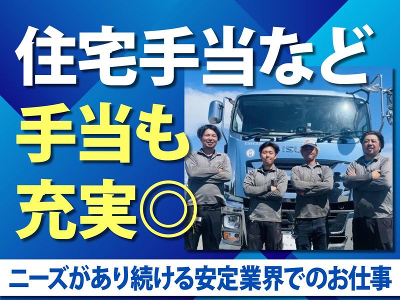 仕事内容 \将来の管理職候補募集!/ ✅現場職などでのリーダー・職長など 人や作業をまとめた経験があればOK ✅年間休日120日+日勤の安定職 ✅賞与年3回・7種類以上ある豊富な手当有 ======================== 「現場監督」「職長」「安全管理業務」等 現場でのリーダー経験を活かして 安定企業の管理者にキャリアアップ! ======================== 弊社は創立50年のグループ会社から 2024年に分社した、まだ新しい会社です。 企業としての安定感は以前のままに、 業績拡大とともに次世代の責任者を 発掘していく方向です。 『経験を活かしてキャリアアップしたい…』 『安定した休みが欲しいけど収入は必要…』 『日勤でお仕事は終わらせて働きたい…』 そんな思いを持つみなさんに 一度見て頂きたい求人です! ======================== \会社の中枢に関われる人材に成長!/ ======================== ≪入社後まずは≫ 現場での作業と安全管理業務を通して 弊社での仕事について知っていただきます。 人の管理や配車、日程調整や工程管理など 各現場でスケジュール通りにものごとを 進めるためのマネジメント能力が 必要になってきます。 ≪ゆくゆくは≫ 現場でのマネジメント業務を積んでいただき 本社にて業務部門全体のマネジメントとして 車両管理・予算管理・人員管理等の 社内の中枢部分にも関わっていただきます。 ============= ≪現場での仕事内容について≫ ============= ~お仕事の流れ~ ①吸引車・洗浄車に乗って、現場に向かう ②水圧洗浄車などを用いて、 現場にて配管設備などの清掃を行う ③作業で発生した汚泥などの廃棄物を 強力な吸引機で回収 ④廃棄物を工場内の集積場にて処理 ⑤帰社する ▶この作業と管理業務をお願いしていきます。 作業は2~3人のチームにて行います。 業務に関しては、 入社後に丁寧に指導しますのでご安心を。 ジャンルを問わず、現場などで 人をまとめるリーダー経験があれば、 その経験を活かして働けます。 \安定業界+充実の福利厚生を準備/  ̄ ̄ ̄ ̄ ̄ ̄ ̄ ̄ ̄ ̄ ̄ ̄ ̄ ̄ ̄ ̄ ̄ ̄ 弊社の事業は景気に左右されにくい、 需要があり続けるお仕事です。 そのため勤務条件の面で社員にも 安定したものをお返しすることが できています。 完全週休二日のペースで休みながら、 月給は38万円以上と高収入になります。 ■ボーナス年3回(年4ヶ月分支給) ■住宅手当・家族手当などの7種以上の手当 ■退職金制度・再雇用制度も完備! ■年間休日120日・日勤のみ 土日固定ではありませんが完全週休2日で、 あります。 ▶現場作業に取り組みつつも管理するのは、 慣れるまで大変な部分もあると思いますが、 それに見合うだけの待遇はお約束します!