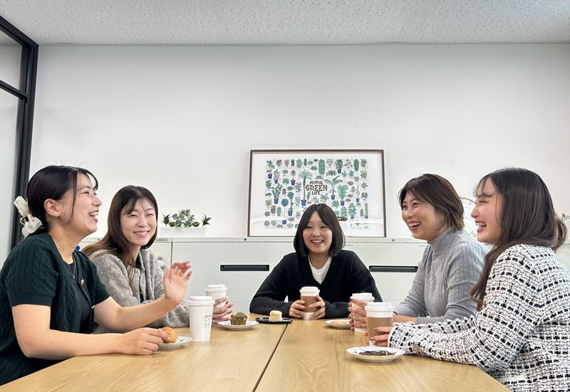 職場環境 現在、事務スタッフは19名体制。 平均年齢35歳で、 20代・30代が中心です。 チームで助け合い、MVP投票で貢献を称え合う風土です。 残業月15h程度で有給消化率も高く、 産育休実績あり。