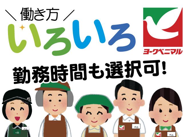 仕事内容 ヨークベニマル 古河店でのスタッフ募集です! (パート・ヘルパー・アルバイト) みんな未経験からスタート! わからないこと、 不安なことはあって当然です イチから基本的なこと、ルール等 お教えしますのでご安心ください! 20代、30代、40代、50代、60代の 主婦(夫)、主婦パートさん(主夫パート)、 フリーターさん、中高年・シニアの方まで 幅広い層の方に人気です! Wワークや副業の方、 学生アルバイトさんもOK! 髪色自由! 働くうえで染め直しの必要もありません! あなたらしいスタイルで働けます! ※安全・衛生面の観点で一定のルールあり。 お子さまが学校に行っている間や、 お迎えの時間など、家庭を大切にしながら 働けるのが、最大の魅力! ・精肉部門のおしごとについて 〇ヘルパースタッフ・アルバイトスタッフ 鶏肉やひき肉、ハムなどの加工品の パック詰めからスタート! 機械の使い方など覚えていただくことも ありますが、丁寧に研修をいたしますので 未経験の方でも安心です! ・レジ兼事務のおしごとについて 〇パートナースタッフ・ヘルパースタッフ・アルバイト お店の顔として、 お客様が気持ちよくお買い物できるよう お客様との接し方、商品登録、レジ操作 などをお願いします ・鮮魚部門のおしごとについて 〇ヘルパースタッフ・アルバイト 始めは海藻、すり身などの加工品の パック詰めからスタートです! 詰め物や品出しを行いながら できること増やしていただきます ・青果部門のおしごとについて 〇パートナースタッフ 新鮮なお野菜やフルーツの パッケージや値付け、商品陳列、 発注などのお仕事です。 食卓を彩るカットフルーツの調理や、 ちょっとしたお花のアレンジメントも身につけられます。 旬や季節に合わせた提案を一緒にしてみませんか? ・品出しスタッフのおしごとについて 〇ヘルパースタッフ・アルバイト 一般食品(加工食品と住居商品)を 扱っております 品出し、補充、日付チェックや発注などの お仕事をお願いします ・惣菜部門のおしごとについて 〇ヘルパースタッフ・アルバイト 天ぷら、唐揚げなどの揚げ物や 焼き物の調理やパック詰め、 お弁当の盛り付けなどのお仕事を お願いします 難しい作業はありませんので 惣菜を扱うことが初めての未経験者も歓迎! ・寿司部門のおしごとについて 〇ヘルパースタッフ・アルバイトスタッフ 生寿司、巻物、いなり、おにぎり、 海鮮丼の製造や盛り付けなどをお願いします ・ベーカリー部門のおしごとについて 〇パートナースタッフ 食パン、調理パン、菓子パン、 ドーナツ、ピザなどの成形、焼き上げ、 袋詰め、値付け、陳列などをお願いします (働き方選べます) 勤務時間帯によって働き方が選べます 家庭の都合や空いている時間など、 ライフスタイルに合わせて勤務可能です! (パートナースタッフ) フルタイム勤務 1日6.5時間~7時間勤務 健康保険・厚生年金・雇用保険加入 試用期間(4時間勤務)3ヶ月程度あり ※賞与+通勤手当支給対象 (ヘルパースタッフ) 短時間勤務 1日4時間から4時間30分 給与によって社会保険、厚生年金加入 ※賞与+通勤手当支給対象 ・加給制度あり(アルバイトを除く) 通常の時給にプラスされます! (曜日加給制度) 土曜日:時給+30円 日曜日・祝日:時給+100円 (時間帯加給制度) 7:00~8:00:時給+100円 17:00~19:00:時給+100円 19:00~22:00:時給+150円 ・各種保険加入 働き方によって加入保険が異なります (パートナースタッフ) 健康保険・厚生年金・雇用保険 (ヘルパースタッフ) 勤務時間により健康保険・厚生年金・雇用保険 ・研修制度あり 未経験でもしっかりサポートいたします! ・昇給、賞与あり (昇給) 年1回あります! ※パートナースタッフ、ヘルパースタッフ対象 (賞与) 年2回の賞与あり! 頑張り次第で額も変わります! ※パートナースタッフ、ヘルパースタッフ対象 ・週休2日制 月末に翌月のシフトを決めます 学校行事や病院等、家庭の都合があれば 事前に申請可能です! (安心して働ける環境) ・研修制度あり ・週休2日制 ・交通費支給 ※自宅から1.5km以上の方が対象 車・マイカー、自転車、バイク、 公共機関(バス・電車) 交通手段問わず支給いたします! (応募方法について) WEB応募よりエントリーください 24時間受付中です WEB応募後は追って面接日をご案内いたします。 お電話でのお仕事内容や、 採用に関するお問い合わせもお気軽に! TEL.0120-889-409