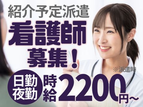 仕事内容 ■介護老人保健施設における看護業務全般 ・配薬管理 ・バイタルチェック、健康管理 ・医療処置 ・嚥下指導 ・排便コントロール ・胃ろう管理 ・記録の作成(スマートフォン使用)など <派遣先> 全100床在宅復帰超強化型の介護老人保健施設 (25床×4フロア) <通勤方法・その他補足> ※バイク・自転車通勤可能!敷地内無料駐輪場あり ※車通勤不可 (自己負担で、近隣のパーキング利用の場合はOK) ※交通費全額支給(公共交通機関利用の方) <受動喫煙対策> あり(敷地内禁煙) <新型コロナウイルス感染防止対策実施> マスク着用での勤務、アルコール消毒液完備などの感染対策をし、利用者様もスタッフも守れるよう体制を整えています。 <紹介予定派遣> 派遣期間3~6ヶ月後、双方の合意のもと、直接雇用(正社員または、パート)となります <転籍後の雇い入れ後の労働条件の範囲> ※予定 ■雇用期間:雇用期間の定めなし ■就業場所の変更の範囲:会社の定める事業所 ■業務内容の変更の範囲:会社の定める業務 ここがポイント ■時給2200円(派遣期間中) ■「日勤」と「夜勤」のシフト制 ■週3日勤務よりご相談ください ■派遣期間3~6ヶ月後、双方の合意のもと、直接雇用(正社員または、パート)となります ■記録はスマートフォンで作成します ■最寄駅から徒歩2~3分!通勤に便利です