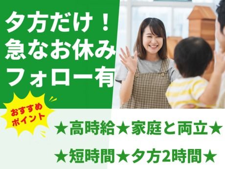 ★夕方2時間★保育士補助◎高時給1500円&サポート業務◎短時間で無理なく働ける♪急なお休みも対応◎