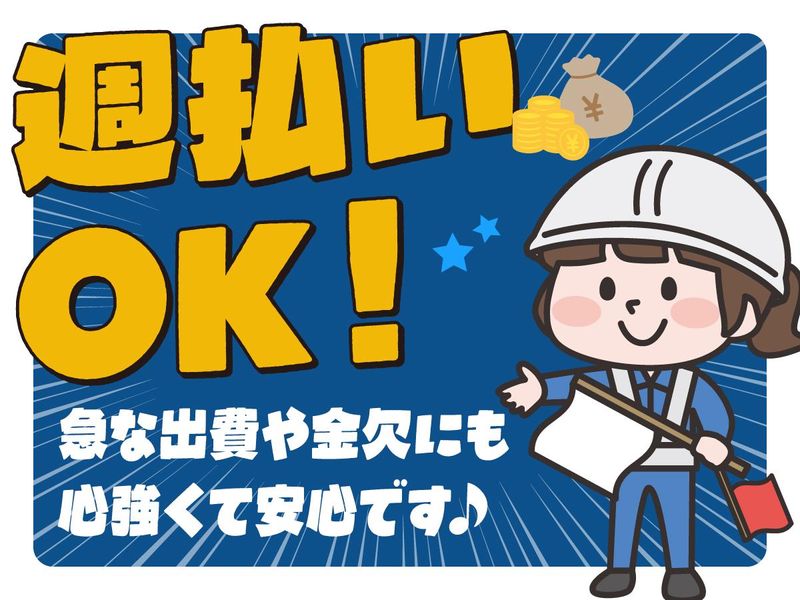 仕事内容 \初めての方にオススメ!!/ 警備員デビューも安心の メリットが色々♪未経験歓迎 ●無資格・未経験歓迎● ●日給保障で安心勤務● ●即勤務×週払いOK● ●安心の研修制度あり● ●資格取得支援もあり● ◤◢◤◢◤◢◤◢◤◢◤◢◤◢ 工事現場の道路や歩道などで 歩行者・車両の誘導をお任せします。 <警備員デビューにオススメ> 丁寧な研修を実施しているため、 安心・安全にお仕事を始められます。 研修中も日給をお支払いします♪ ●即日勤務が可能です!! 履歴書不要のスムーズ面接OK お電話でのご応募も可能です →0797733838 ●即収入!週払い制度あり 早く働き始めてすぐに収入が欲しい そんな方もご安心ください◎ 急な出費にも対応できますよ☆ ●日給保証制度あり 現場によっては早く帰れる場合もあり 「予定の工事がもう終わったから 警備スタッフさん達も帰ってOK」など。 早く帰れた場合でも日給は全額保証! 収入がバラつかず安定します♪ 《阪神エリア一円に勤務先あり》 「自宅から近い場所がいい」 「この電車の沿線で希望」なども お気軽にご相談ください◎