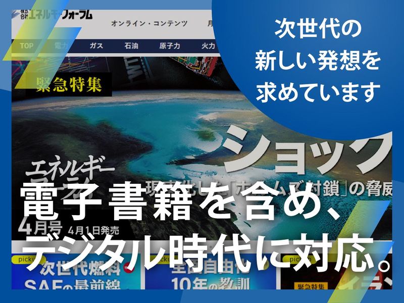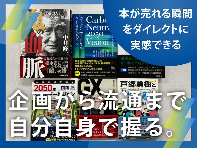 求めている人材 【必須条件】 ・大卒以上 ・出版社または編集プロダクションでの書籍編集経験(2年以上目安) ・企画立案〜校了まで一連の流れを完結できる方 【歓迎条件】 ・実用書や専門書の編集経験 ・出版の全工程に関わりたい方 ・エネルギーや社会課題への関心がある方 【こんな方に◎】 ・長時間労働から離れ腰を据えて働きたい方 ・分業ではなく自らの手で書籍を届けたい方 ・1冊1冊、じっくりと向き合いたい方 ・専門知識はなくても、新しいことを学ぶ姿勢がある方 ■企画営業部責任者 森本より 今回の増員は、当社の書籍出版をより強固なものにするための前向きな募集です。 新しく入る方には、先輩の西澤と同じ目線で対等に意見を出し合いながら、2人で「企画営業部 出版課」を盛り上げていただきたいと思っています。 社会的な関心が高まっているエネルギー分野で、あなたのこれまでの経験を発揮してください。