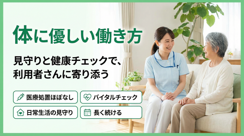 見守り・健康チェックが中心。体に負担のない訪問看護!