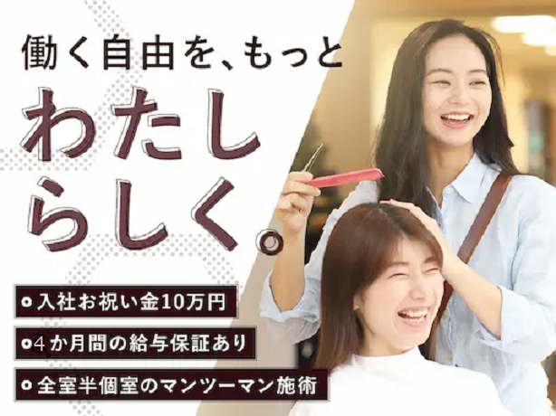 アピールポイント \✅収入にこだわれれる!/ 完全歩合制なので、頑張りがしっかり 還元され、従来のサロン勤務よりも 給与アップを実現することができます。 稼ぎたい月は休日出勤で どんどん稼ぐことも可能! \✅プライベートも充実!/ 完全シフト制なので、土日休みもOK! 連休などを取得して旅行にいったりなど プライベートも大事にできるサロンです。 \✅ブランクがあってもOK!/ 合同研修やサブスク講習 「HAIRCAMP」あり! 安心してどんどんスキルを 身につけていきましょう!