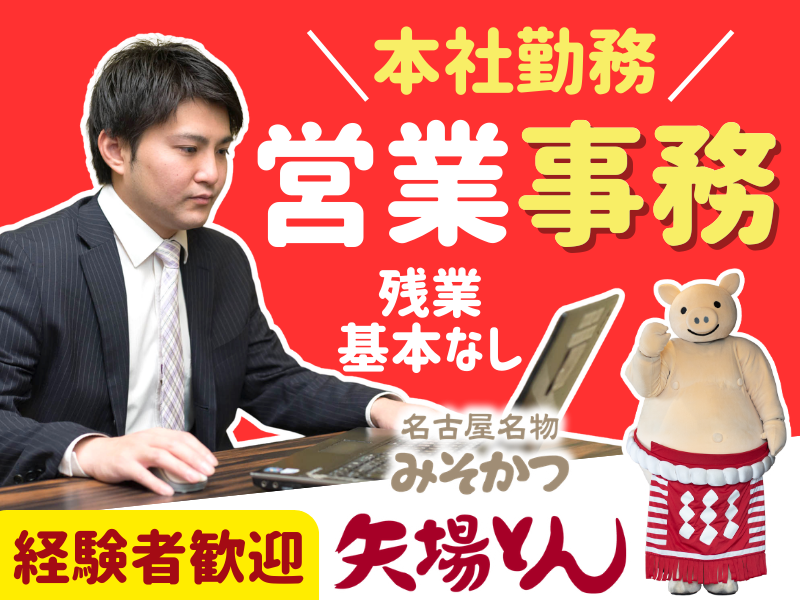 仕事内容 <おすすめポイント>- ★名古屋名物・みそかつ「矢場とん」の バックオフィスの新メンバー増員 ★基本的なPC操作ができればOK ★接客・販売の経験者、大歓迎 ★土日休み&残業は原則なし! ★矢場町駅から徒歩8分以内◎ - 名古屋名物でお馴染みの みそかつ「矢場とん」の本社で 営業スタッフをサポートしつつ 受発注業務も任される やりがいのある営業事務です。 取引先はJRやイオン、名古屋近郊ホテル バンテリンドーム、ポートメッセなど 地元の大手企業様が中心。 大人数の学会や会議、イベントなどに 矢場とんのお弁当やケータリングの ご注文をいただいています。 矢場とん店舗の予約手配などもあります。 受注・発注依頼などの 営業のサポートがメインですが 直接お客様とお電話やメールなどで 納品日や納品場所をすり合わせして いただく場面もあります。 <仕事内容> ・電話・メール対応(取引先・社内) ・受発注業務(メールが中心) ・見積書・請求書の作成 ・顧客データの入力管理 ・営業のサポート業務 ・庶務業務 など ◎通帳管理・入金確認などできる方歓迎 <基本的なPC操作ができればOK> 現在、40~60代の営業と 営業事務1名の部署。 お互いに声をかけあい 連携しながら業務にあたっています。 最初はデータ入力や電話・メール対応 からはじめ、業務を教えていきます。 慣れてくると仕事の幅も広がり 任される業務も増えていきますよ。 もちろん、わからないことは 何でも聞いてくださいね。 イベント会場にキッチンカーで出店し お弁当などの販売をしています。 本社オフィスから外に出て 接客販売の応援に行くこともあり みんなで協力しながら業務にあたり いい気分転換にもなりますよ。 学生時代、接客や販売などの バイト経験がある方は活かせます。 <TVやCMなどで認知度の高い矢場とん> 2022年に立ち上げた新しい部署です。 矢場とんは、東海エリアを中心に 関東や関西にも店舗展開し お店のファンが多く、知名度もバツグン! 全国からお越しになる 学会やイベントなどの関係者の方を 「矢場とんの味でおもてなししたい」と 多くの取引先から ご注文をいただいております。 <先輩スタッフより> 入社前は、駅での接客や 旅行センターで旅行の手配業務 ホテルの営業事務などをしていました。 矢場とんは、ぶーちゃんCMで知名度も高く 店舗数も取引先も多く、安定した事業の上 フランクで居心地の良い職場です。 私たち女性事務の頑張りも評価してもらえ 仕事の一部だけを担うのではなく 最後まで関われることにやりがいを感じます。 みんなで協力して業務を進める 楽しさや達成感も実感できますね。 雇用形態:正社員 事業内容:飲食店運営