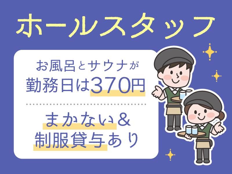 仕事内容 温浴施設内のレストランでの ホールスタッフの募集です! -・-< オススメポイント >-・-・-・- #勤務日は割引料金で温泉&サウナが利用可能! #週2日〜、1日4h〜勤務OK #半月ごとのシフトで予定に合わせて働けます! #初バイトやブランク復帰も応援! #Wワーク・副業・扶養内勤務もOK #土日祝は時給アップ -・-・-・-・-・-・-・-・-・-・-・-・-・ < お任せするのは… > 温浴施設内に併設されている レストランでのホール業務全般。 ■具体的には ・お席へのご案内 ・お冷とおしぼりのご提供 ・オーダーテイク(ハンディを使用) ・ドリンク作り ・お料理運び ・お済みの食器の片付け ・テーブルのセッティング など まずは先輩のフォローから始めていき、 徐々に仕事の幅を広げていきましょう! ● 幅広い年代が活躍中の職場!  ̄ ̄ ̄ ̄ ̄ ̄ ̄ ̄ ̄ ̄ ̄ ̄ ̄ ̄ ̄ 高校生から主婦さんまで、 地元の方々を中心に大勢活躍中! 「家の近くだったから」 「都合に合わせて働けるから」 「本格的な料理に惹かれて」など、 志望動機もみんなバラバラです。 あなたの「やってみたい!」も 応援するので気軽にご応募くださいね。 バイトデビューでも、未経験でも、 久しぶりのお仕事復帰でも大歓迎です!