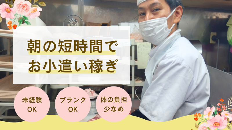 職場環境 朝の時間帯のみの勤務で、家事やプライベートと両立しやすい環境です。 作業は補助業務が中心で、一人に負担がかかることはありません。 周りのスタッフが声をかけながら進めるため、初めての方でも安心して働けます◎ 喫煙所:なし(敷地内全て禁煙)