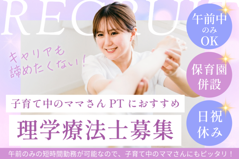 仕事内容 ┏━━━━━━━━━━━━━━━━┓ 【資格を活かし隙間時間を有効活用したい方必見】 ✅ 幅広い時間帯×WワークOK ×スキルがしっかり身につく環境 →夕方から、午前のみ、平日のみ等、 お時間帯のご相談にのります! ✅ 整形外科に特化! 複数担当制で1名あたりの負担解消 ✅ 週2日からOK ✅ 保育園併設/短時間勤務制度など、 安定×安心をご提供! 【数字で見るのぞみ整形外科クリニック西条】 ◎来院患者数 550人/日 ◎在籍PT常勤: 30人 非常勤3名 ◎平均年齢: 31.3歳 こんな方におすすめ ◎効率よく収入を得たい方 ◎人間関係が良い環境で働きたい方 ◎時間を有効に使いたい方 あなたのご経験を活かして、 一緒に働きませんか。 ┗━━━━━━━━━━━━━━━━┛ \情報収集だけのお問い合わせもOKです/ 絶対損はさせません! 職場見学のみも絶賛受付中! ご興味ある方はぜひお気軽にご応募ください♪ ⏬⏬⏬⏬⏬⏬⏬⏬⏬⏬⏬⏬⏬ 電話:082-264-1700(担当:カネヤマ宛) 受付時間:9:00〜18:00 ⏫⏫⏫⏫⏫⏫⏫⏫⏫⏫⏫⏫⏫ ■仕事内容 患者さん一人ひとりに最適な施術を提供する、 リハビリテーション業務を行っていただきます。 【主な業務】 ・外来患者様への施術実施 ・機能訓練指導 ・運動補助 ・その他付随する業務 詳しくは当院の公式サイトをご覧ください! \*理学療法士の採用ピッチ資料公開中*/ https://www.nozomi-clinic.jp/recruit/archives/6579 \*職場・お仕事紹介の動画公開中*/ 当院の魅力が詰まっておりますので、 是非ご覧ください! https://youtu.be/g1gwXEIx8M4?si=0iu8tGCBRxMMfGfn *\採用Instagramも見てね/* のぞみ整形外科クリニック【採用】 https://www.instagram.com/nozomiseikei\_clinic/ *\のぞみ整形外科採用 HP/* https://www.nozomi-clinic.jp/recruit/ ■西条クリニックのアピールポイント ⭐温厚で親しみやすい院長 スタッフや患者さんへ 思いやりをもって接する事を大切にしてます。 ⭐スタッフ目線を大切に 常に“現場目線”で物事を考え、 患者さんとスタッフ両方の意見を尊重した判断をします。 ■業界トップレベルの学べる環境 ⭐手厚い新人教育 教育担当と複数の先輩が新人教育をサポート。 年代別の指導で安心です。 ⭐バディー制度導入 2〜4人1組で患者さんに対応。 不安や悩みをすぐに相談できる環境です。 ■働く仲間も多く、常時協力体制をとれる環境 ⭐多様な経験を持つスタッフ 常勤27名、非常勤3名。 新卒からベテランまで幅広く活躍中です。 ⭐チーム医療の推進 急な休みでも他のスタッフが 患者さんを理解しているので安心です。 ■保育園完備で子育てと両立しやすい職場 併設するのぞみの森保育園あり20:00まで開園しています。 安心してお仕事に専念頂くことができます。 【のぞみの森保育園】 https://www.nozomi-clinic.jp/nozominomorinursery/ ■その他 髪の色、アクセサリー、ネイルなどは規定の範囲内で自由にしていただけます。 規定については面接時などにお気軽にご質問ください。 ■必須条件 ・理学療法士 資格保有者 ・業務経験1年以上 ■*歓迎条件* ・チームワークを大切にできる方 ・積極的に業務に取り組める方