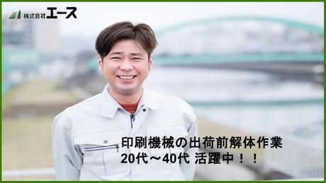 仕事内容 仕事内容 ・商業用印刷機製造メーカーの工場で組立が完了した商業用印刷機械を出荷前の商品テストを行うために一度組立(ドッキング)を行います。 その後、商品テストが完了したものから出荷に向けた解体をお願いします。 ・2人ペアでの作業体制になります。重量物の取り扱いがございますが、重量物の運搬は有資格者の担当が行いますのでその補助業務をお願いします。 ・未経験の方も入社時にしっかり研修がありますので安心!! 求人のポイント ・土日祝休みの週休二日、夏季休暇、年末年始など長期休暇あり ・人間関係良好、安くて美味しい社員食堂あり!就業環境の良い職場です。 ・事前に職場の見学が可能なのでしっかり仕事内容を見てからスタートできます。 ・派遣先企業での直接雇用(社員登用の過去の実績あり)の可能性もあります。 ・5Sの行き届いたとてもキレイな職場環境です! 【株式会社エースの特徴】 株式会社エースでは、事務職や物流関連、工場勤務や製造業の経験がない方やベテランスタッフもそれぞれの環境に沿ったお仕事をご紹介いたします。 現在、お仕事をしていただいてるスタッフさんは 年齢幅も20代、30代、40代、50代の方など幅広い年代のスタッフさんが活躍しています! また勤務スタイルも、あなたに最適な働き方をご提案をさせていただきますのでご安心ください! 例えば土日祝休みが希望、 ゴールデンウィーク、夏季休暇、年末年始などの長期休暇が有る職場が希望、 長期間働ける職場が希望! 短期間働いて自分の趣味との両立をしたい、登録だけしておきたい、などなど・・・ ご自身の希望する働き方をお気軽に相談してください! 転職希望の方や、正社員で働くためにスキル UPをしたい方もぜひご相談を !