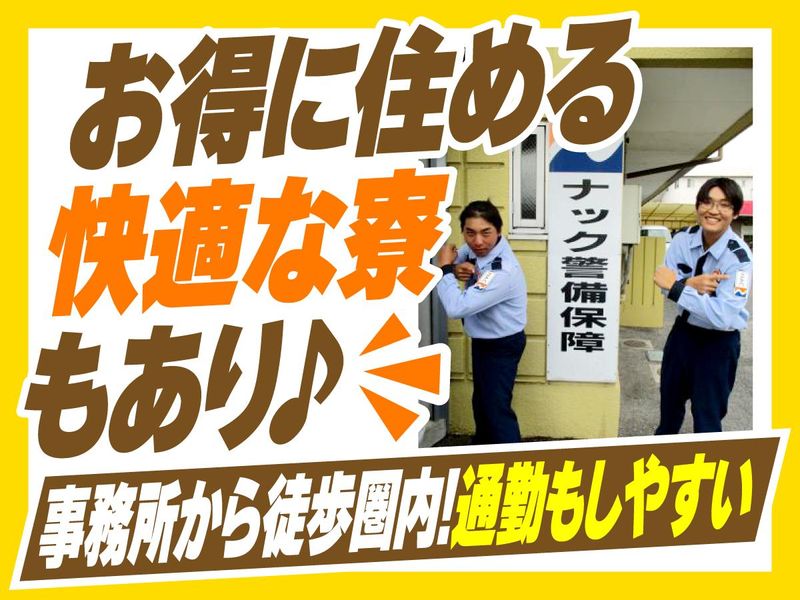 求めている人材 ========== 未経験歓迎 スタッフの約6割が 未経験スタート! ========== ◆こんな方も歓迎です ―――――――――――――――――― ・WワークOK ・フリーターOK ・主婦・主夫歓迎 ・正社員で安定したい ・日払いで即給料ゲットしたい! ・施設警備、交通誘導、夜間警備の経験者 ・ハローワークでお仕事をお探しの方 ◆ナックの社長は女性 ―――――――――――――――――― 相談ごともしやすく、 社内は穏やかで明るい雰囲気。 スタッフも20代~40代、 大学生、中高年・60歳以上のシニアまで 和気あいあいと活躍中! 男性が多い職場ですが、女性も活躍しています! 先輩たちは優しく仕事も丁寧に教えてくれますよ♪ 年齢の条件と理由:あり(例外事由2号・18歳以上(警備業法))