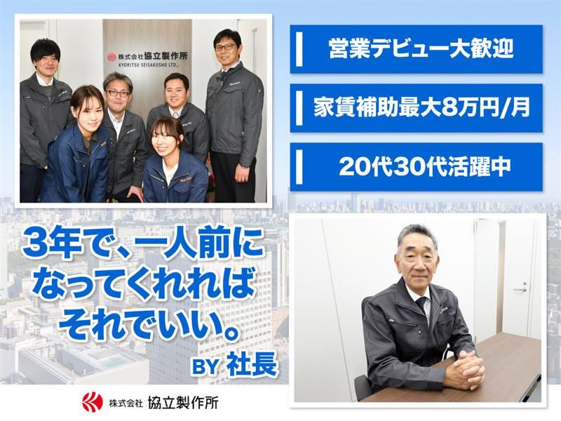 仕事内容 ******************* 3年で、一人前になってくれればそれでいい。 BY 社長 ******************* ✨当社の先輩営業は、全員営業未経験からスタート。 はじめは、営業の仕事内容も、 扱う商品・商材も、全くわからない状態でしたが、 今では皆、お客様から頼りにされる営業になっています。 ******************* ✨そんな先輩達の入社動機上位3つ ✅家賃補助最大8万円!+奨学金補助が嬉しい →ここは一人暮らしの大きな味方。 ほぼ全員がこの補助を最大限活用しています。 ✅沢山休める!年間休日132日(2025年度) →業界サービス上、短納期での商品がないため、 休みもしっかり。比較的 ゆったりとした時間が流れていますので、 ✅仕事が楽そう。 →飛び込みやテレアポは一切なしだし、 自ら新規開拓しなくていいという点 ******************* ✨先輩を紹介 入社7年目元エステティシャン、 入社4年目元施工管理、 入社4年目元紙業の営業、 入社2年目元洋菓子店の店長、 未経験で入社したからこそ、 不安や、悩みなど、 入社当時の気持ちが痛いくらいわかる。 だから何でも聞いてもらってOK。 今どきめずらしいくらい、アットホームな会社です。 ******************* ✨簡単にどんな仕事をするのかご説明 学校や化粧品・薬品メーカーの研究施設に必要な設備をご提案している当社。 マニアックな業界かもしれませんが、 競合も少なく、 古くからお付き合いのあるお客様(メーカーさん)から ご相談を頂くことが非常に多いです。 ――――――――――――――――――― 仕事内容詳細 ご紹介のお客様を担当する仕事。 ――――――――――――――――――― 飛び込みやテレアポで探客させることは一切ありません。 ほとんどがお客様からのご紹介やHP等のお問い合わせなので、 まずはお客様のご要望をお聞きするところからはじめ、宿題をもらってきて下さい。 最初は、社内に持ち帰ってわかる人に聞く。でOKです。 もちろん製品カタログはありますし、 分からないことはそばにいる先輩に何でも聞いて下さいね。 お客様のお話を聞く。が、最初のステップです。 ――――――――――――――――――― ✨3年間。じっくりと、時間をかけて 一人前の営業に育てます ――――――――――――――――――― 完全な営業未経験者の先輩は、 ・1年目は引継ぎ業務 ・2年目で全体の流れを把握して ・3年目で規格品でない製品でも対応出来るようになり ・4年目で自信がついて、提案出来る引き出しが増えた という感じで一人前に! 経験者のいない激レアな仕事ですので、未経験でも、じっくりと時間をかけて育てていきます。 ――――――――――――――――――― ✨商品のこと詳しくお伝えします。 環境や作業者の安全に関わる欠かせない製品です ――――――――――――――――――― 例えば、当社の主力製品の1つである「局所排気装置」は、 実験室や工場内で発生する有害ガスや粉塵などを、 室内へ拡散する前に吸引する装置。 「排ガス洗浄装置」は、発生した有害ガスを清浄な空気に 洗浄処理して大気に放出する装置です。 どれも非常にニッチな製品ですが、「環境や安全に関わる意義のある仕事をしている」 という実感と大きなやりがいを得られるでしょう。 ――――――――――――――――――― ✨元エステティシャンから聞く、仕事のやりがいって ――――――――――――――――――― 「人に頼られる嬉しさを知った」 実験用の排気設備など、私たちにしか作れない、オーダーメイドのものを扱うので、 商品の重要性を感じられます。 「ちょっと不安なことがあったので、とりあえずK・Nさんに電話してみた」 と連絡をいただき、社内のいろんな人の知識を集め、 安心してもらった時の手ごたえは大きいですね。