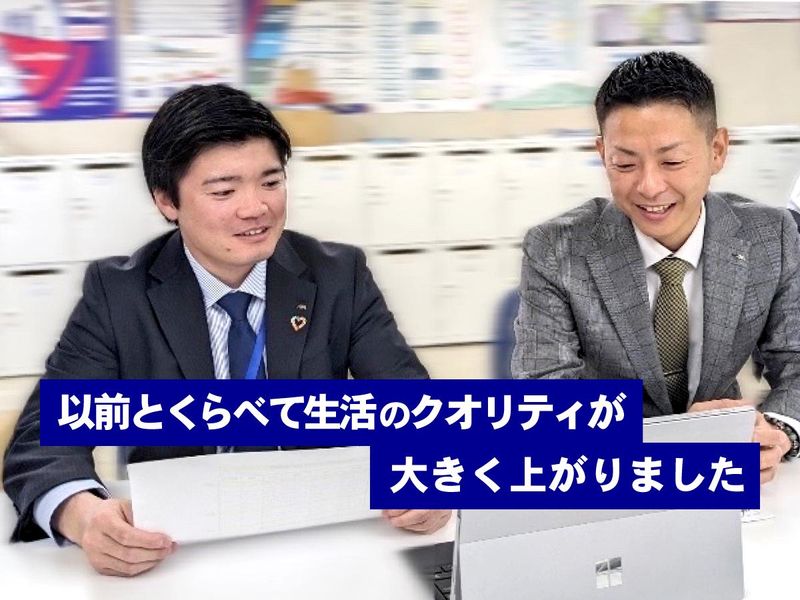 仕事内容 [1] 仕事とプライベートを 両立し活躍できる環境! (厚労省の「プラチナくるみん」認定企業!) お子様のそばにもいたい、 でも自分のキャリアも考えたい! そんな方々と一緒に 仕事をしたいと思っています。 育児育孫時短勤務、 妊婦の時差出勤制度など、 家庭環境も考慮した働き方が実現可能! 中学校に就学するまで 育児育孫短時間勤務として 1日6時間勤務でお子様の 成長を見守ることができます。 [2] ご自身が描いた「夢」「目標」、 豊かで充実した「ライフプラン」を ぜひ実現してみませんか? 私たちアクサ生命保険は、 企業と個人2つのマーケットに 取り組んでいます。 経営者を中心とする 「企業マーケット」に加え、 ご自身のネットワークや人脈などの 「個人マーケット」で ライフプランニングを実践し、 お客様の人生に寄り添うことができる やりがいのある仕事です。 お客様のライフプランを 作りながら、ご自身の夢も かなえてみませんか? [3] 健康経営(R)を通じて 企業の持続的な成長を支え、 地域社会に貢献しています。 アクサ生命では商工会議所・ 商工会との連携で会員企業の 健康経営(R)の導入のサポートをし、 「従業員にとって安心して働き 続けることのできる職場づくり」を 実践しています。 アクサ生命も、従業員が 働きがいのもてる 職場環境づくりを行っています。 [4] 3年間の一貫した 研修カリキュラムで みなさまをサポートします。 3年間はトレーニー期間となり、 さまざまな知識・スキルを 習得しながら、保障給を重視し、 半年毎の責任額を クリアしていくことで、 給与が上がっていく 仕組みとなっています。 正社員昇格後は成果が 反映しやすいように 業績給比率が高くなります。 保障給は、これまでのみなさんの 経験・能力・収入目標から 保障給が決定します。 ―――――――――――――――――――― 【仕事内容】 [1] 商工会議所/商工会会員企業に対する 生命保険による従業員の 福利厚生制度(退職金・弔慰金)、 経営者のリスク管理・事業承継の コンサルティング営業 [2] 中小企業における 健康経営(R)導入・実践支援 [3] 個人のライフマネジメント(R)に基づく、 資産形成などのアドバイスや保険設計 ※「健康経営(R)」は NPO法人健康経営研究会の登録商標です。 ※「ライフマネジメント(R)」は アクサ生命保険株式会社の登録商標です。 【1日の流れ (例)】 09:15/ 朝礼開始 09:30/ 営業所長・スタッフへの事前相談など 10:00/ 担当事業所への訪問 16:30/ 活動報告入力、明日の準備、 営業所長や主任への報告など 17:00/ 終業 【先輩のお話を聞いてみませんか?】 アクサグループは「磨き」「鍛え」 「繰り返す」ことでスキルを 身に付けていただくことを めざしています。3年間一貫した 研修カリキュラムでサポートし、 生命保険の基礎と商工会議所・ 商工会マーケット、 コンサルティングスキルなどを しっかり学んでいただきます。 みずから、主体的に前向きに 学び取り組むことで、生命保険業界や 営業職の経験がない多くの先輩社員が、 現在大活躍しています。 これからの人生の選択の 1つにしていただくためにも、 一度、お気軽にご連絡ください。 【弊社の紹介】 会社名:アクサ生命保険株式会社 従業員数:8,147名(2024年年度末時点) 事業内容:生命保険に関する業務