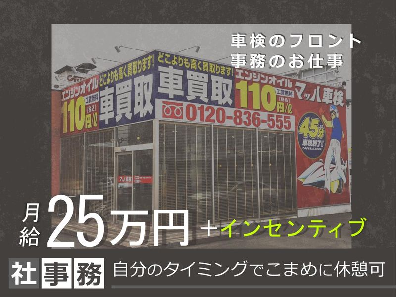 仕事内容 _/_/_/_/_/_/_/_/_/_/_/_/_/_/_/_/_/_/_/ ⭐レア求人! 事業拡大の為の新規スタッフを大募集! _/_/_/_/_/_/_/_/_/_/_/_/_/_/_/_/_/_/_/ 【仕事内容】 ・お電話対応 ・受付業務 ・入力業務 ・見積書作成 ・お見送り ・お出迎え ・売上処理 ・代金回収 まずは笑顔で「いらっしゃいませ」が言えればOK! 事務作業などは徐々に覚えていけば大丈夫♪ しっかりサポートいたします! ✅1日の仕事の流れ(例) 8:45 出勤 10:00 問い合わせメールのチェック 買取予約の準備 11:00 オークションの出品など 12:00 お昼休憩(1時間) 13:00 お客様対応や事務作業 15:00 車庫証明書提出や車両の入れ替え 17:00 お客様対応や事務作業 18:15 閉店・片付け、自分の業務終了後、退勤 (あくまで一例です) 座ってばかりだとしんどくなっちゃうので こまめに休憩をとってくださいね♪ 煙草を吸う方も、喫煙可能です。 ◤ 心からの“ありがとう”の為に… 最高のカーライフを提供 ◢ 私たちの仕事は、お客様の安全・安心を 守り、お客様に合わせた最高のカーライフ を提供していくことです。 そのためには、全員が人間力を磨き、 技術力を高めていく為に、本気で学び続ける 会社である必要があります。 そして全てのお客様から 「ここを選んでよかった」 と感謝をされる仕事を通じて 自己成長をし続けます。 一人ひとりが、一つ一つの信頼を積み重ねて 「ありがとう」と言ってもらえる 仕事に取り組みます。 社員が一人一人こういった視点を持って 業務にあたっているので社内の雰囲気も◎ 人の為を思う仕事ぶりだからこそ、 職場の雰囲気は優しく朗らか☆彡